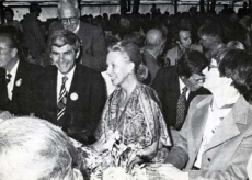 4e Congrès du GFFD : Dr. Bernard Muller, président du Gouvernement bernois et Madame Geneviève Aubry, 1978. Collections Mémoires d'Ici.